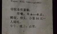 The vegetarian dishes in the temple are 18 yuan for stir-fried dishes and 15 yuan for soup. They are also carried up the mountain bit by bit by people, so they are a bit expensive. Breakfast is 10 yuan per person, which includes porridge and steamed buns to fill you up.