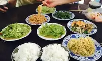 We finally arrived at our accommodation, Xianfeng Temple. While the temple's accommodations weren't particularly good, and it was already 4 p.m., leaving us plenty of time to reach Yuxian Temple or Xixiangchi, as the team leader, seeing our team members were exhausted and some were injured, we decided to rest here! Xianfeng Temple has quite a few guest rooms. We stayed in the cheapest, an 8-person room, which was just right for the eight of us. At 50 yuan per person, the wooden beds were damp and had a strong woody smell, but it was tolerable. The soundproofing wasn't great. The temple has a cafeteria, but it only serves vegetarian food. Dinner is 25 yuan per person, all you can eat, but you have to finish your dish before you can order more. This prompted a few of us to eat like crazy, just to get another serving of shredded potatoes. The wood ear mushrooms and shredded potatoes were quite tasty. While the other dishes weren't as good, we devoured them and enjoyed our meal.