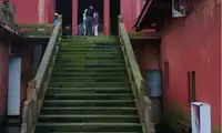 Halfway up the mountain, after climbing the stairs for a long time, we arrived at a small temple.