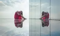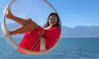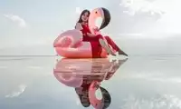 Along the way, we saw many hotels with glass ball shooting props. We even climbed to the roof of a hotel that was not open yet, but the shooting effect was not ideal because there were too many obstructions, railings, etc. I wanted to give up, but I accidentally saw a shooting spot on the roadside, so I stopped the car immediately and changed clothes directly in the car. Because it was close to the seaside, the effect of the photo was invincible. It only cost 15 yuan, and I got the glass ball, the sky mirror, and the white table. I was so happy!