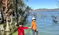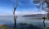 The driver took us to a place he thought was beautiful by the Erhai Lake, so we followed him. We didn't need tickets. Of all the places we visited that day, only the Erhai Lake didn't need a gate. Because I saw the beautiful withered vines by the Erhai Lake, I liked them very much. I wanted to go there, but found that they were closed. The driver surprisingly took us through a small path. The path passed through a forest and we came to the withered vines that we had been thinking about and took a photo... The withered vines were very beautiful, but there were not many good photos. The sun was too glaring and I couldn't open my eyes... I didn't take any more photos after that. I just had fun in the water. It was so fun. Later, I saw the panoramic view of Erhai Lake on the train. It was really beautiful.