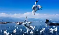 In December, a large number of red-billed gulls migrated to Dali. After two villagers' children threw snacks, many red-billed gulls took off. It was beautiful ~ the same color as the sea and sky of Erhai Lake. There are many wetlands on the roadside. Be sure to pay attention to safety while taking pictures.