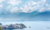 Erhai Lake in Dali is a place worth visiting, but it is not as beautiful as hyped... It takes less than an hour to reach the top by boat, where there is a building and a tower.
