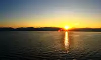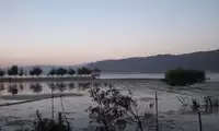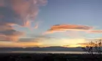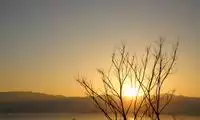 On the quiet Erhai Lake, one or two small boats would occasionally pass by, and from time to time there would be the sound of waves hitting the shore; and the mountains in the distance had their outlines dyed red by the gradually rising sun.