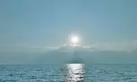 The warm sun hangs in the blue sky, and the breeze blows on the blue waves;