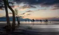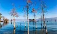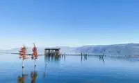 Passing by Erhai Lake, all you see is water. The water of Erhai Lake is not like a lake. It is deep blue with no bottom in sight and no end, just like the vast ocean. There are nothing but trees on the seashore. The frost of the years has peeled off the bark, and the drooping green branches are long, floating in the wind and buried in the water. Even their dead bodies are quiet and sinking in waves, accompanying them day and night, forever.