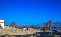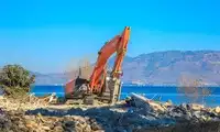 There is an excavator demolishing a house, with the endless beautiful Erhai Lake behind it. It makes me feel bad looking at this scene.
