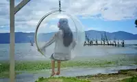 The most famous photo backdrops at the Erhai Lake are the white tables and glass balls. It seems that if you don’t take photos here, you have never been there, so I couldn’t help but check in here. The owner of the photography base is also very good at doing business. He rented this excellent viewing spot, arranged some props, charged a site fee, and thoughtfully prepared a variety of skirts (mostly red and white long skirts) for rental. I spent a total of 80 yuan for taking photos here (site fee 50 + renting clothes 30)