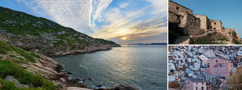The stone houses are built on the cliffs by the sea. The people who used to live on Dongji Island and the army on the island are worth seeing.