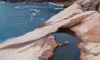 Although the stone house is no longer inhabited, the summer bathing spot is irresistible.
