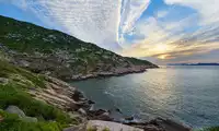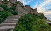 It's worth a visit. You can see the houses where people used to live on the island. They look very spectacular from a distance. The houses are covered with ivy. You can also swim here. The water is very clean and the sound of it hitting the rocks on the shore is very pleasant. I also caught a lot of small crabs and accidentally found a sea urchin.
