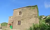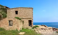 The scenery is really unique, with uninhabited stone houses facing the sea.