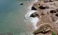 The most beautiful section of the eastern route. There's a beach where you can go down and experience the water. The rocks were swarming with insects, so trypophobics should be careful. They scatter so quickly wherever people approach, I couldn't get a photo. Later, after arriving at Miaozi Lake and searching on Baidu, I learned they're called sea cockroaches, which have two other names. Even more disgusting, hahaha, but they're not as annoying as cockroaches.