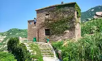 They are all ruins made of stones, but no one lives there anymore, so they have become a group of abandoned stone houses covered with ivy.