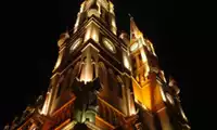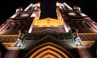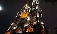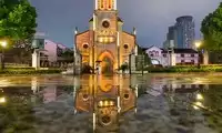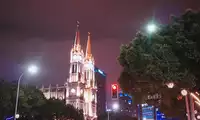 Ningbo Catholic Church, located on the north bank of the Sanjiangkou River, north of Xinjiang Bridge, in Ningbo, Zhejiang Province, comprises the Bishop's Palace, the main parish, and several outbuildings. The architectural integrity and grandeur of the building are particularly striking, with the towering, slender church, known for its unique Gothic architectural style, making it a nationally recognized outstanding modern building. It is a designated key cultural relic protection site in Zhejiang Province and one of the sixth batch of national key cultural relic protection sites. The night view is stunning.