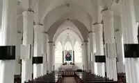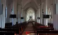 The entire complex consists of the bishop's residence, the main parish, and several outbuildings. The buildings are uniform and magnificent, especially the towering and slender church, with its unique Gothic architectural style, which makes it the most prestigious Catholic church in the province.