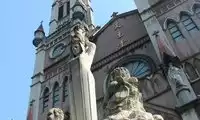 The Catholic Church is very big and tall. Many people took photos there. I am a Buddhist, so I just looked at it.
