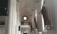 Of course it has been rebuilt now. There are almost no people in the church, and the scriptures are placed on the tables.