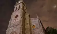 A magnificent church appeared before our eyes. The entire complex consists of the bishop's palace, the main parish, and several side buildings. The towering and slender church, with its unique Romanesque Gothic style, is particularly magnificent.