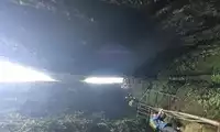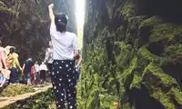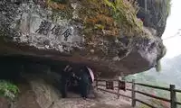 Then we arrived at Huixianyan, where we could take shelter from the rain under the big rocks and pose for photos.