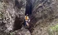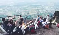 It is easy to go up the mountain but difficult to go down. The nearly 90-degree hanging ladder will really challenge your legs.