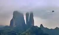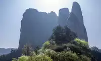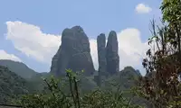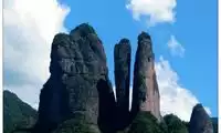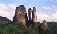 Jianglang Mountain is located in Jianglang Township, 25 kilometers south of Jiangshan City. Legend has it that in ancient times, three brothers surnamed Jiang climbed to the top of the mountain and turned into three huge rocks, so it is also called "Three Pieces of Stone". The three huge rocks rise from the ground to the sky, with an altitude of more than 800 meters. They are shaped like stalagmites and pillars of heaven, and they look like they were cut by knives and axes. They are arranged in the shape of a "Chuan" from north to south, namely: Langfeng, Yafeng and Lingfeng.