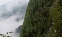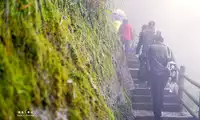 The climb from Dengtianping to Wentian Pavilion on Jianglang Peak and then down the mountain via the Tianqiao is incredibly treacherous, with some sections even dipping 90 degrees to the horizontal. The vertical descent leaves legs and feet trembling. Jianglang Mountain's beauty remains undimmed even in the rain and fog, especially the greenery: the trees, the branches, the grass. It's truly intoxicating, even without the green itself.