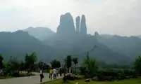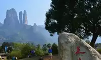 Jianglang Mountain, located in Shimen Town, 25 kilometers south of Jiangshan City, Zhejiang Province, is a national scenic spot and one of China's few remaining World Natural Heritage Sites. The mountain's main structure is composed of three towering boulders. Legend has it that three ancient brothers surnamed Jiang ascended the mountain and transformed into three massive boulders, hence the name Jianglang Mountain. The three boulders rise over 360 meters into the sky, resembling stalagmites and pillars of heaven, their shapes resembling those of a knife or axe. Arranged from north to south in the shape of a Chinese character "川," they are: Langfeng, Yafeng, and Lingfeng, known as the "Three Stones." Langfeng, at 816.8 meters, is known to tourists both domestically and internationally as "the highest peak of China's Danxia." On the cliffs of Langfeng, the Ming Dynasty Neo-Confucianist Zhan Ruoshui inscribed the four characters "Wall Standing Ten Thousand Rens" (i.e., "Wall Standing Ten Thousand Rens") in a cliff inscription. Jianglang Mountain not only combines rocks, caves, clouds, and waterfalls within a single mountain, combining the unique, dangerous, steep, and precipitous features of the three rocks, creating a magnificent and unique spectacle. Furthermore, its vast mountains, lush forests, hidden caves, and flowing springs create enchanting scenery. Whenever clouds and mist swirl, the mists swirl, and the rosy clouds and radiant sunsets shimmer, the sky and mountains often merge into one, blending the clouds and peaks into one. It's no wonder that the Tang poet Bai Juyi praised it, saying, "I wish I could grow wings so I could travel with you intoxicated by the mist and clouds." The great geographer Xu Xiake wrote about Jianglang Mountain during his three visits to the Jiangshan Mountains. He compared it to Yandang Mountain, Huangshan Mountain, and Dinghu Peak, emphasizing its "strangeness," "danger," and "divine" qualities. Jianglang Mountain's scenery has captivated countless tourists, both Chinese and foreign.
