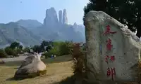 First, we navigated the Eighteen Bends, where the man-made mountain path made the ascent easy. We arrived at Kaiming Zen Temple without any stress. Although the interior was under renovation, we didn't venture inside. Across the street, we could see the stunning cliff carvings of Jiangshan. The path further up gradually became steeper, and in some places, the rock was severely weathered. There were few tourists when we visited, and the breathtaking view of the narrow passage between two mountains was truly spectacular. A shout echoed loudly. Further up, there's a rest area midway up the mountain, but it's currently under renovation and closed to the public. From here, we begin the southern route to Langfeng. The mountain path was carved by stonemasons. A monument marking the completion of the project stands along the way. Seven stonemasons, one welder, and one on-site supervisor worked on it for three years, leaving us in awe. The southern route to the summit is incredibly steep, with many sections jutting off the cliff edge, almost vertical. We had to climb on our hands and knees. Finally, we reached the summit of Langfeng, where the panoramic view rivaled even that of Mount Tai. Note: There are no shops between the midway rest area and the summit. The climb is strenuous, so plenty of water is recommended. We met a buddy at the top of the mountain. We rushed to the wooden house with great anticipation, but were disappointed when we found the doors and windows were closed... He licked his dry lips and helplessly asked us about the way down the mountain via the south line. He said, "I came up via the north line. I was so tired. There was not a single place selling water on the mountain..." Hahaha, it was so desolate. It was a pity that we had no water either.