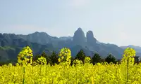 Jianglang Mountain, commonly known as the Three Stones, comprises Shifenglang Peak, Shizhu Sub-Peak, and Shiqiangling Peak, a typical Danxia landform. Xu Xiake visited the mountain three times and praised it in his travelogue, "Xu Xiake's Travels."