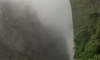 Langfeng was closed due to heavy rain. I stayed at Xiake Pavilion and Dengtianping for half an hour each, waiting for the clouds to clear. God was not unkind to me and let me see the beautiful scenery. When I returned to Huixianyan, the heavy rain suddenly formed three waterfalls on the cliff. I was the only one in the valley, taking shelter from the rain while enjoying the beautiful scenery. I felt like I was in heaven.