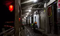 If you go there at night, you will find the ancient street corridor a beautiful sight. The curved corridor has a red lantern hanging in each room, and its reflection in the stream is very beautiful.