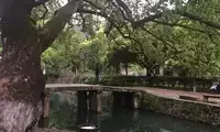 There are small bridges, flowing water, houses, stone paths, dense trees, beautiful scenery, and a very good environment.