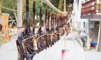 Along the way, there are many tea shops, dogs, cured duck, Buddha's hand, tea, and chickens that climb trees.