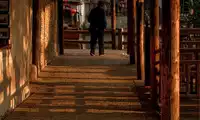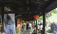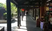 The corridor extends from the street to the riverside. The round wooden pillars support the sloping roof. In the middle, there is a turning pavilion with two layers of carved patterns, which are the most outstanding.