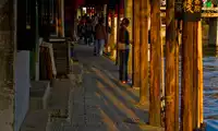 The scenery along the Rain Corridor after dark is as stunning as any other ancient water town, but what I love most is the bustling atmosphere of dusk and the hustle and bustle of cooking. After a busy day, whether it's business owners, tourists, or ordinary locals, the whole family will sit together for a warm meal. They'll wash their tired clothes in a basin, dry them in the sun, and then wear them again the next day. Then, to the sound of bells and drums, a fiery meal will be a treat for both their stomachs and mouths.
