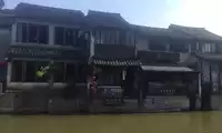 The riverside walkway is full of shops. Sit on the bench beside and watch people coming and going.