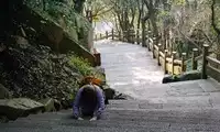 After coming out of Fayu Temple, I started walking up the 1,088 steps to Huiji Temple. Along the way, I saw devout people bowing every three steps.