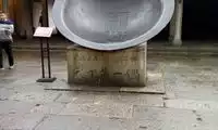 Located in the Xizha Scenic Area, the pot mouth has a diameter of 10 meters, the outer edge of the pot mouth has a diameter of 15 meters, and it is 3 meters high. It is welded from 60 stainless steel plates that are 3 meters long and 1.22 meters wide, and angle steel weighing nearly 10 tons.