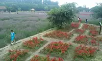 There are many flowers planted in the dragon-shaped fields, full of pastoral atmosphere.