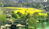 During the Qingming Festival, the dragon-shaped field is full of brilliant rape flowers, which are shaded by February orchids. Behind it are pink walls and black tiles. It is beautiful at that time.