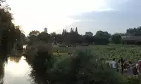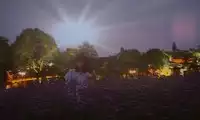 From the Dragon Shaped Field, you can see the White Lotus Pagoda in the distance, as well as the newly lit water lanterns and sheep, making the twilight even more colorful.