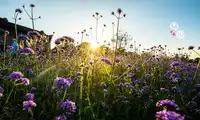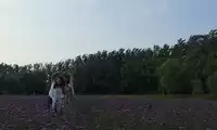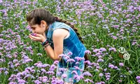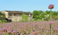 Unlike lavender, verbena stands tall and majestic, yet equally captivating with its alluring purple hue, drawing countless beauties to stop and take photos, letting them freely wander through this sea of purple. At sunset, the golden sunlight casts a magical, alluring hue on the sea of purple blossoms, making them appear even more delicate and alluring, adding a touch of splendor to Wuzhen.
