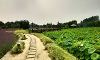 I wandered into a deserted alleyway, and suddenly the world fell silent. As I savored the tranquility, I was suddenly greeted by a dragon-shaped field reminiscent of Tao Yuanming's idyllic paradise. When we visited, there were no tourists, only farmers toiling in the fields. Nearby, a low patch of lavender, not yet fully bloomed, carried a faint, intoxicating fragrance. In the distance, clusters of lotus blossoms filled the air, and reeds swayed in the wind by the pond's edge. The water was perfectly still, and a specially designed wooden plank path allowed visitors to immerse themselves in the water and admire the delicate beauty of the lotus blossoms.