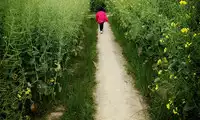 Haha, I missed the rape flowers, they have all borne fruit, so I can only find a few small red flowers to set off myself