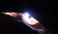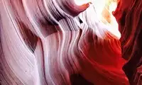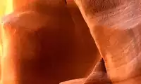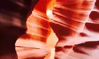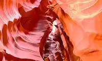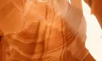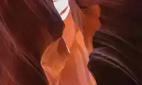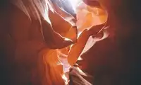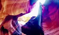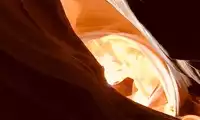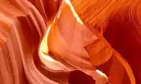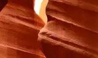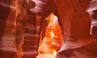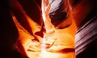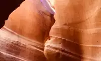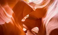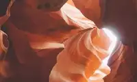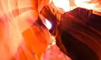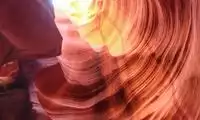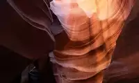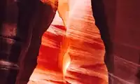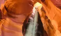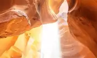 Entering the canyon's crevice and gazing upward, you'll be immediately struck by the vibrant colors cast by sunlight on the wave-like rocks. This ripped-open fissure is the work of a flash flood, which carried sand and rock, tearing it apart bit by bit, carving out a surface as smooth and hard as flowing water. Combined with the sunlight, this creates a magical paradise on earth.