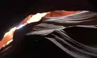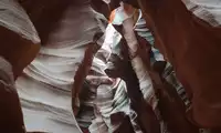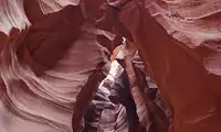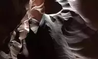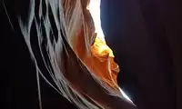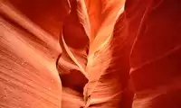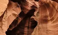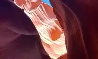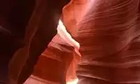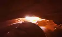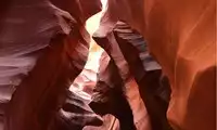 Antelope Canyon's geological formations are renowned for their red sandstone, sculpted by mountain torrents into a dreamlike landscape. Around noon, when the sun is at its peak, the canyon rocks are beautifully illuminated. Only for a brief moment at noon can sunlight penetrate through a few gaps to reach the canyon floor. The view is slightly less impressive at other times. Our visit was past peak viewing season; even between 11 and 12 noon, the sun couldn't reach the canyon floor, leaving no visible beams of light. The canyon was completely dark, making the view quite subpar. We recommend visiting at noon between April and September for stunning views, but reservations are essential during peak season.