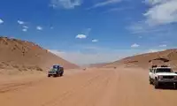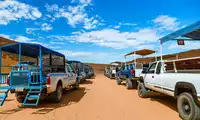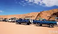 The tour guide led everyone into the park by truck. The wind and sand were very strong, so it was recommended to wear sunglasses and a hat.