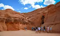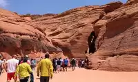 To enter the scenic area, you must be led by a Navajo guide. Each group of tourists transfers to their open-top trucks, carrying about 15 people. The 18-minute, terrifying drive to the canyon entrance takes place. The driver, who also serves as the guide, leads his or her group into the scenic area. Each group of tourists is allowed a certain amount of time between groups to avoid disturbing each other.