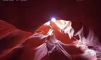 Our guide was a chubby young man from Indiana who spoke a little Chinese. He led us into the canyon. He explained that Antelope Canyon was carved by torrential floods eons ago. The canyon is very narrow, in some places so narrow that only one person can pass through. The walls are smooth, with distinct layers of texture. The sunlight streaming in from the canyon ceiling makes the valley dazzling. Some areas resemble hearts, others waves, others butterflies, and still others cascading waterfalls. A closer look reveals the clear signs of the canyon's sides being carved. If a powerful strongman were to press the rocks inward, the canyon would likely return to its original seamless unity.